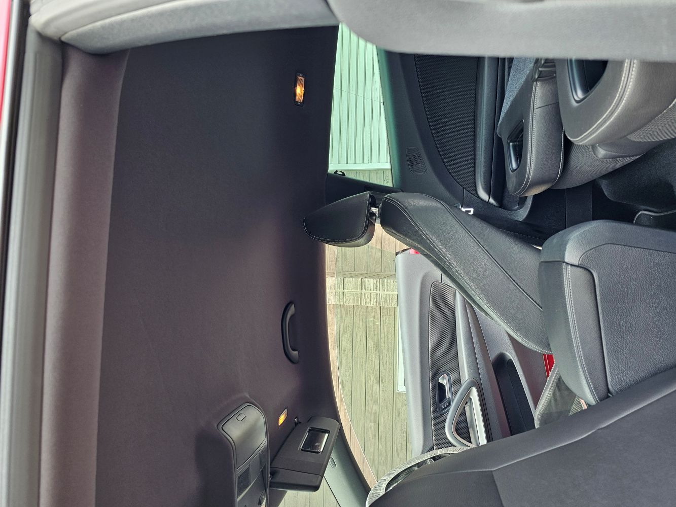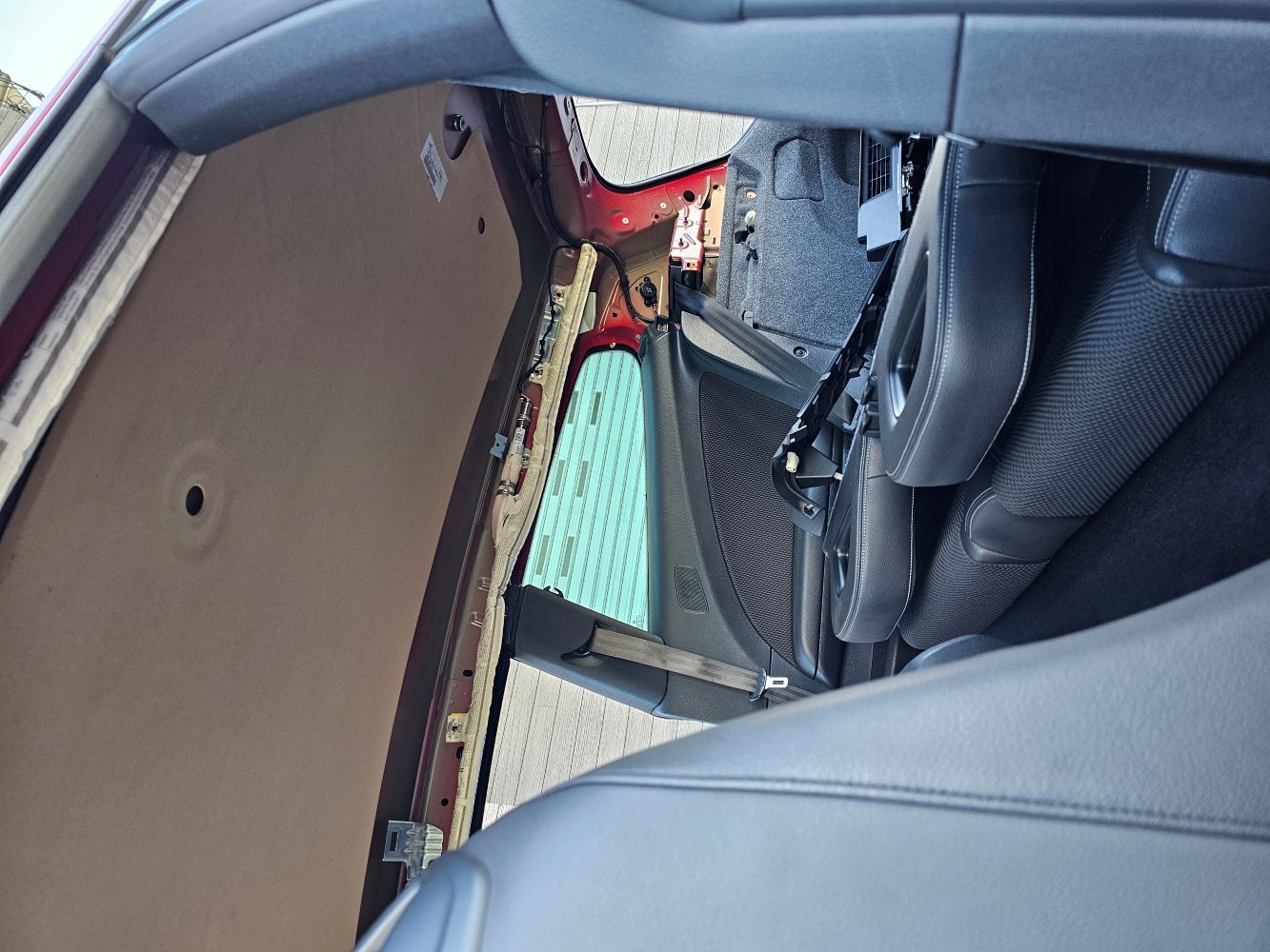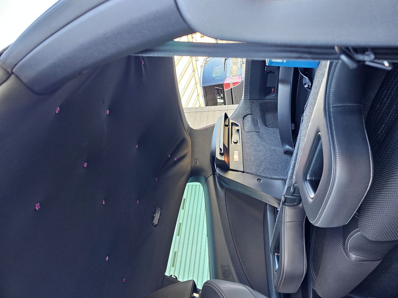 新品のウレタン付きの生地を貼ります。後は車内に戻して完成となります。