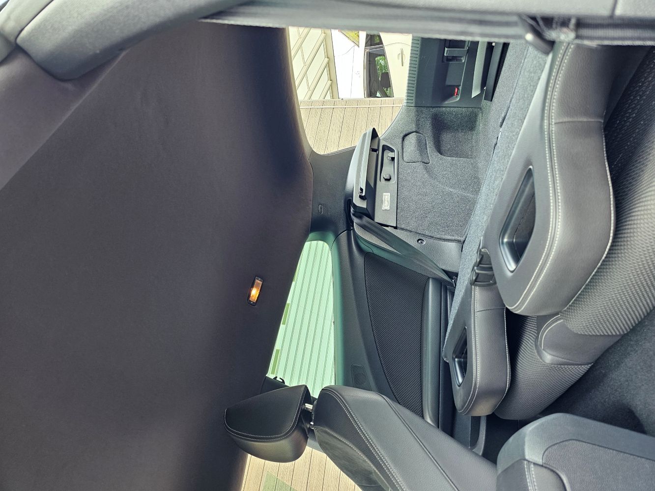 ハッチバッククーペでありながら幅広く短いロングルーフを特徴とするバックドアが殆ど垂直に
