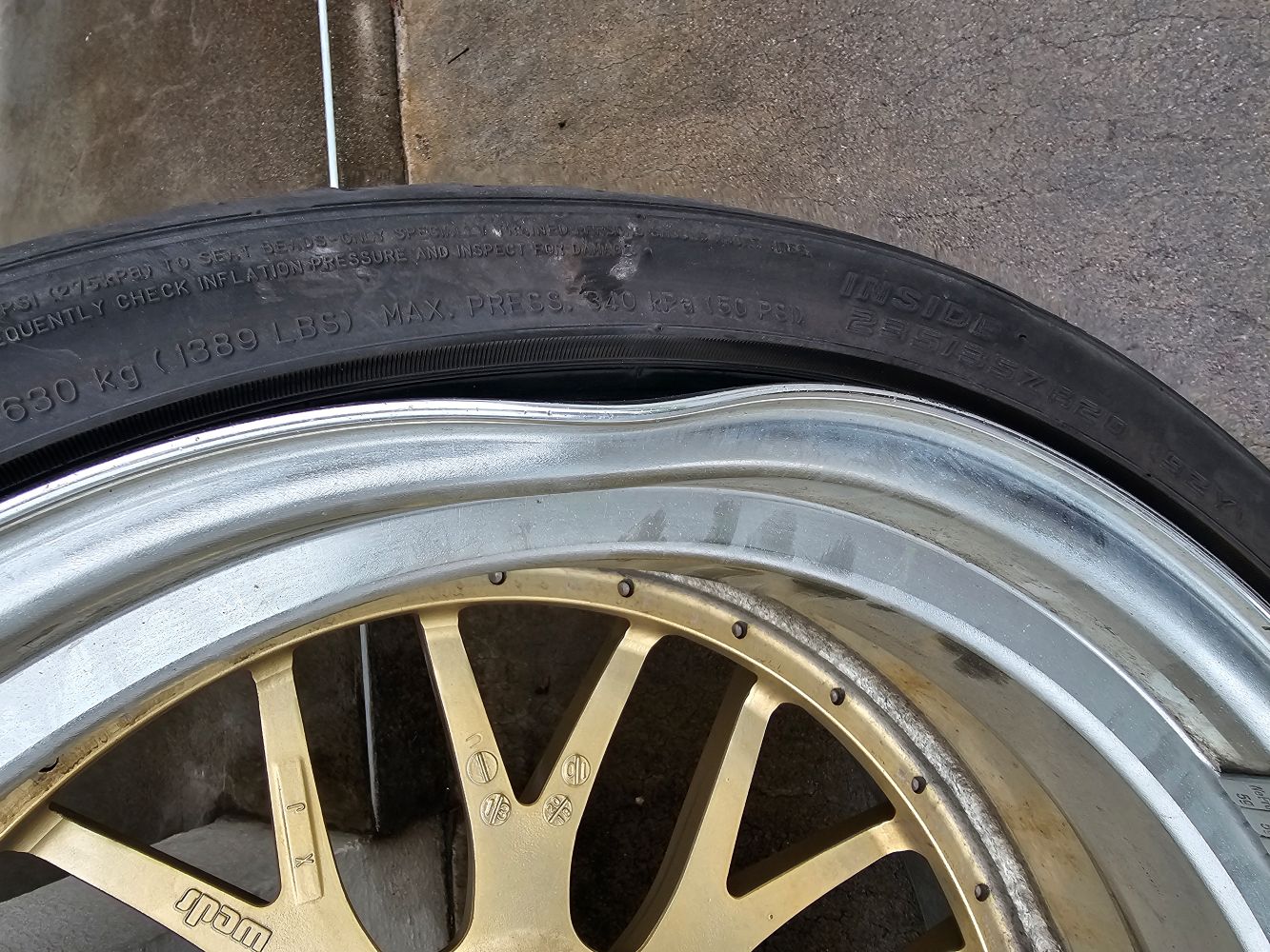 エアーバルブ部分を真下にして、右側に大きな歪みがあります。